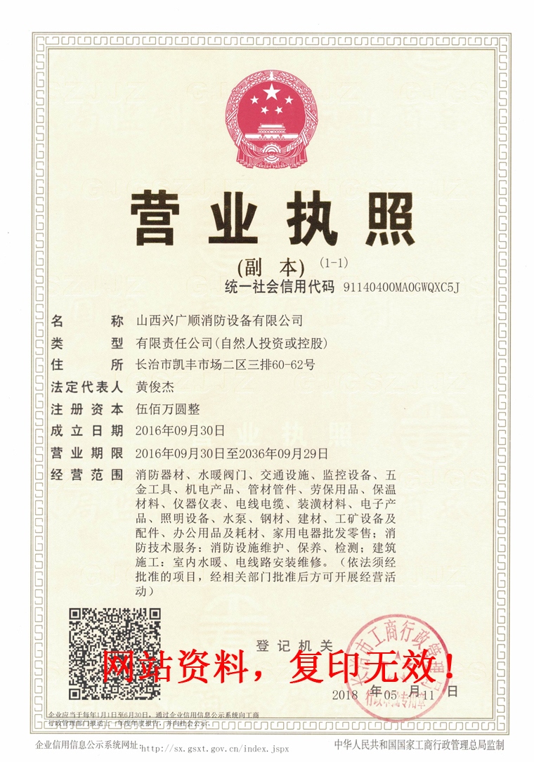 歡迎訪問山西興廣順消防設(shè)備有限公司網(wǎng)站(www.xgs119.com),本公司承諾所銷售的產(chǎn)品均為原廠標(biāo)貨,請您放心購買!