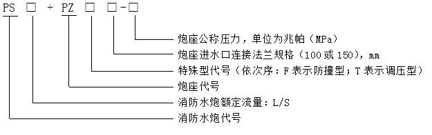 自泄防凍型消防水炮型號編制方法如下所示。