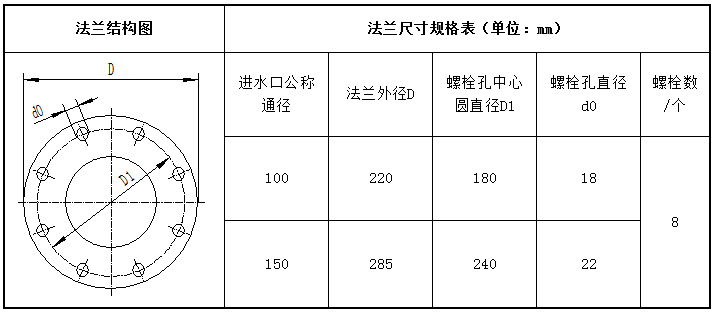四、自泄防凍型消防水炮與管網(wǎng)連接法蘭尺寸說明